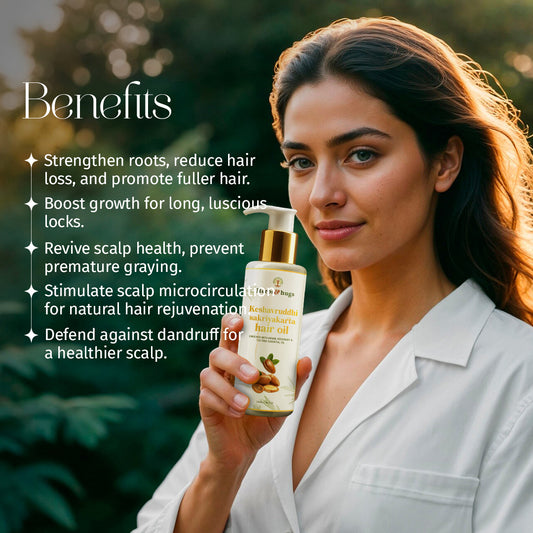 Discover our Ayurvedic hair care range — crafted to strengthen roots, reduce hair fall, and restore natural shine with every wash.